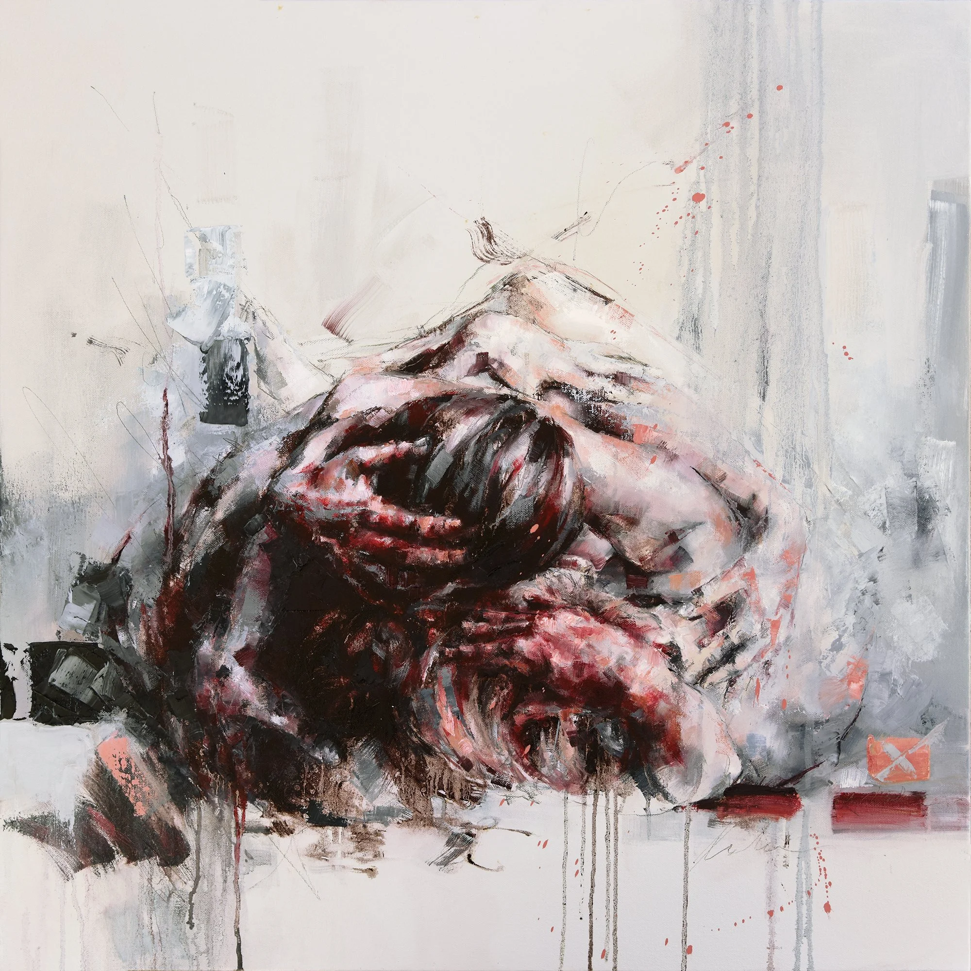 30 x 30” Original mixed media (oil, charcoal & graphite) on canvas